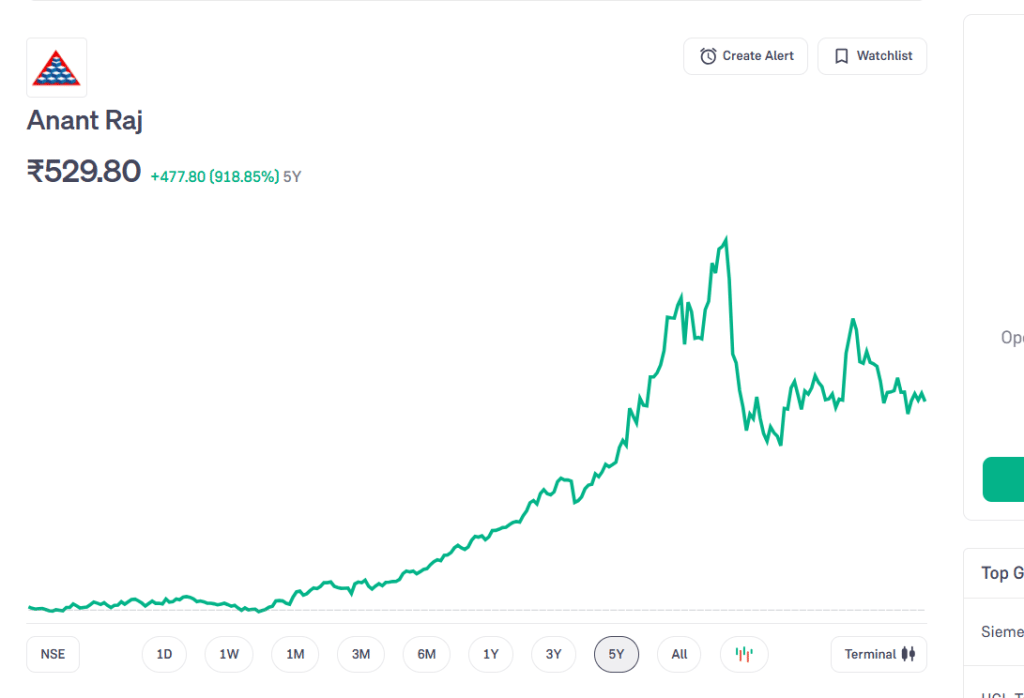 AI से जुड़े शेयरों में दूसरा बड़ा नाम है Anant Raj Ltd. यह कंपनी ट्रेडिशनल रियल एस्टेट से निकलकर अब तेजी से AI डेटा सेंटर इंफ्रास्ट्रक्चर की ओर बढ़ रही है. जनवरी के आखिर में शेयर ₹489 के आसपास था, जो फरवरी के अंत तक ₹529 रुपये पर आकर बंद हुआ. कंपनी के शेयरों ने बीते पांच वर्षों में निवेशकों को 919 फीसदी का मल्टीबैगर रिटर्न दिया है.