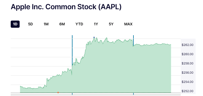 एप्पल के शेयर लगभग 4 फीसदी बढ़कर 262.24 डॉलर पर पहुंच गए. इससे कंपनी की कुल वैल्यू 3.9 ट्रिलियन डॉलर हो गई है. वैल्यूएशन के मामले में सिर्फ एनवीडिया ही अब एप्पल से आगे है. अगर यह बढ़त बनी रही, तो एप्पल का शेयर चार हफ्तों में सबसे ज्यादा उछाल दर्ज करेगा. इस साल अब तक शेयर 5 फीसदी से ज्यादा बढ़ चुका है.