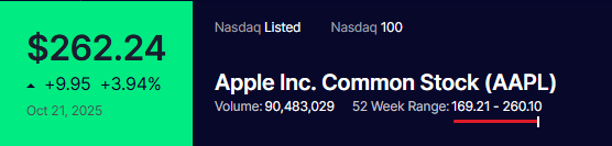 सोमवार को एप्पल के शेयर ने नया रिकॉर्ड बनाया, जो ऑल-टाइम हाई पर पहुंचा. iPhone 17 की शानदार बिक्री ने निवेशकों और उपभोक्ताओं का ध्यान खींचा, जिससे कंपनी का मार्केट वैल्यूएशन 3.9 ट्रिलियन डॉलर के करीब पहुंच गया. शेयर 4 फीसदी बढ़कर 262.24 डॉलर पर बंद हुआ, जिसने एप्पल को दुनिया की दूसरी सबसे बड़ी वैल्यूएशन वाली कंपनी बना दिया.
