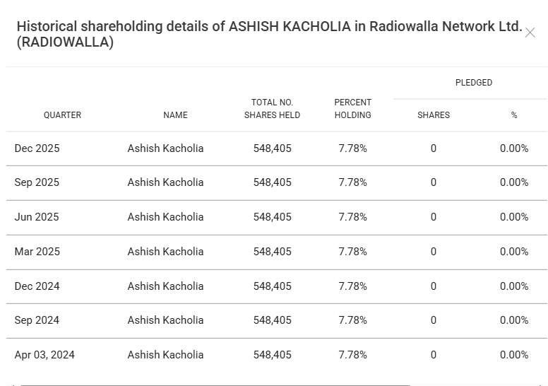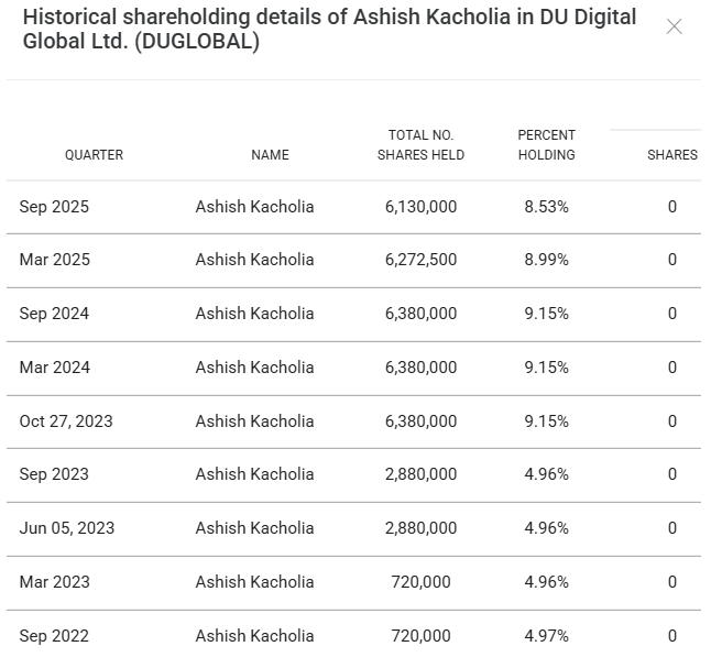 आशीष कचोलिया की हिस्सेदारी