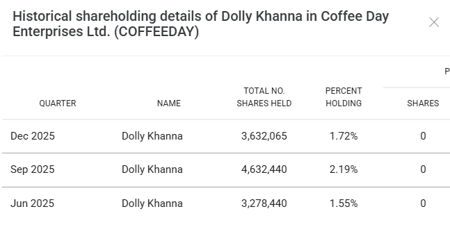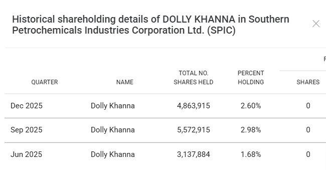 डॉली खन्ना की हिस्सेदारी