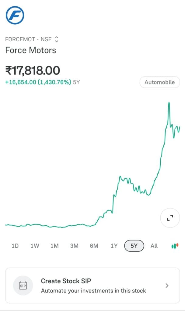 6 महीने में Force Motors के शेयर ने 44 फीसदी से ज्यादा रिटर्न दिया है. एक साल में कंपनी के शेयर ने 156.37 फीसदी का रिटर्न दर्ज किया है. पांच साल में कंपनी ने 1430.76 फीसदी का शानदार रिटर्न दिया है. कंपनी का ROE 23.39 फीसदी है. P/E रेशियो 21.78 है, जबकि P/B रेशियो 6.69 है. कंपनी का 52-वीक हाई 21,381 रुपये और 52-वीक लो 14,255 रुपये है.