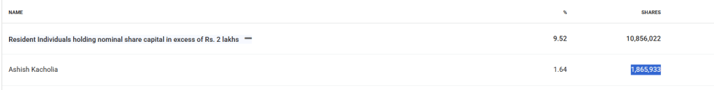आशीष कचोलिया की हिस्सेदारी और शानदार रिटर्न्स