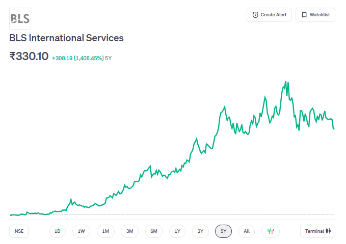 BLS इंटरनेशनल सर्विस सेक्टर की एक दिग्गज कंपनी है, जो वीजा और कांसुलर सेवाओं के क्षेत्र में वैश्विक स्तर पर काम करती है. लंबी अवधि में यह निवेशकों के लिए सोने की खान साबित हुई है. पिछले 5 वर्षों में इसने 1400% से अधिक का मल्टीबैगर रिटर्न दिया है, हालांकि हालिया समय में इसके शेयर में नरमी देखने को मिली है.