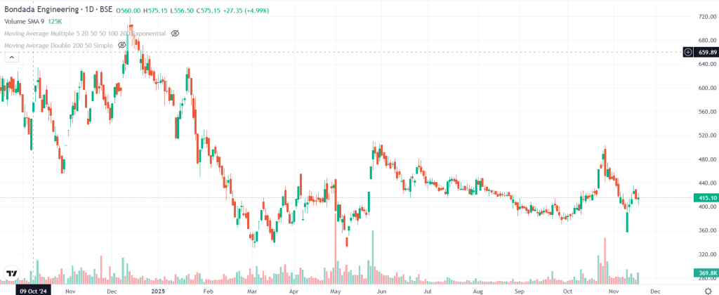 मल्टीबैगर स्टॉक Bondada Engineering एक बार फिर से फोकस में है. कंपनी ने Adani Group के साथ एक बड़ा Framework Agreement साइन किया है, जिसके बाद निवेशकों का ध्यान फिर से इस स्टॉक की तरफ गया है. यह डील कंपनी को आने वाले समय में Adaniके रिन्यूएबल एनर्जी प्रोजेक्ट का स्ट्रैटेजिक फैसला और कंस्ट्रक्शन पार्टनर बनाएगा, जो उसके बिजनेस में लंबे समय तक मजबूती ला सकती है. यह शेयर अपने एक साल के हाई से 42 प्रतिशत नीचे ट्रेड कर रहा है.