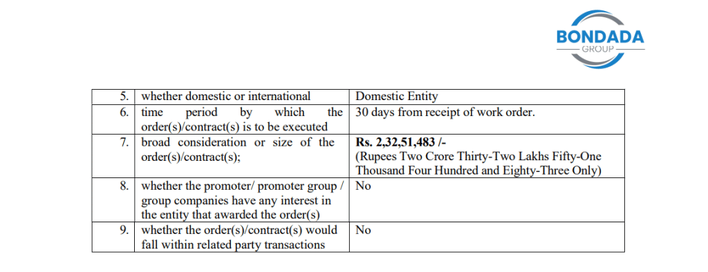 इन ऑर्डर्स के साथ कंपनी के प्रोडक्ट्स को Standard Schedule of Rates (SSR) में मंजूरी मिल चुकी है. यह प्रोजेक्ट्स अगले 30 दिनों के भीतर पूरे किए जाएंगे. Bondada Engineering को उम्मीद है कि आने वाले महीनों में GHMC और अन्य सरकारी विभागों से और भी ऑर्डर्स मिलेंगे.