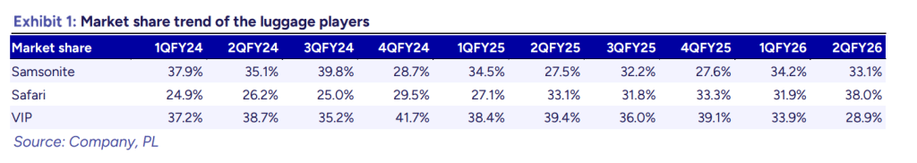 VIP Industries में मैनेजमेंट बदलाव के बाद प्रतिस्पर्धा तेज हो रही है. वहीं Samsonite इंडिया ने भी छह तिमाहियों की गिरावट के बाद 2QFY26 में 8.5% की ग्रोथ दर्ज की है. नए D2C ब्रांड भी बाजार में दबाव बढ़ा रहे हैं.