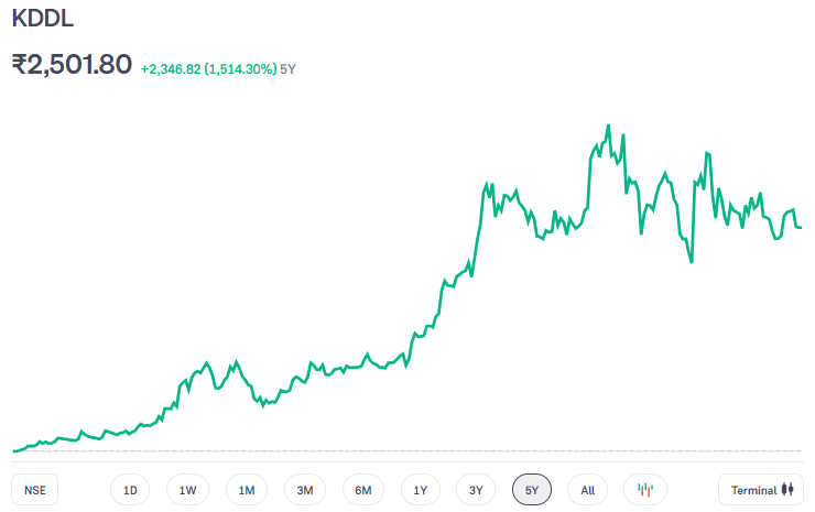 लग्जरी वॉच कंपोनेंट्स बनाने वाली कंपनी KDDL लिमिटेड ने स्विट्जरलैंड की मशहूर वॉच ब्रांड Favre Leuba का अधिग्रहण कर वैश्विक बाजार में अपनी स्थिति और मजबूत कर ली है. कंपनी की यह रणनीतिक खरीदारी उसे न केवल अंतरराष्ट्रीय पहचान दिला रही है बल्कि प्रीमियम वॉच इंडस्ट्री में एक बड़ा विस्तार भी सुनिश्चित कर रही है. पिछले 5 साल में कंपनी ने 1500% से अधिक का मल्टीबैगर रिटर्न दिया है. विश्लेषकों का अनुमान है कि लॉन्ग टर्म में KDDL के शेयर मुनाफा करा सकते हैं. ऐसे में निवेशक इसे वॉचलिस्ट में शामिल कर सकते हैं.