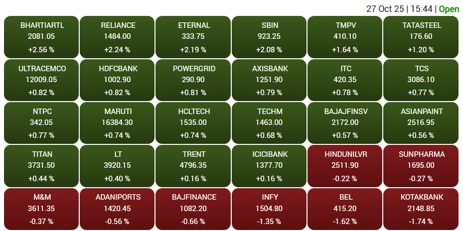सेंसेक्स में जहां 2.56 फीसदी तेजी के साथ भारती एयरटेल टॉप गेनर रहा. वहीं, कोटक बैंक 1.74 फीसदी गिरावट के साथ टॉप लूजर स्टॉक रहा.