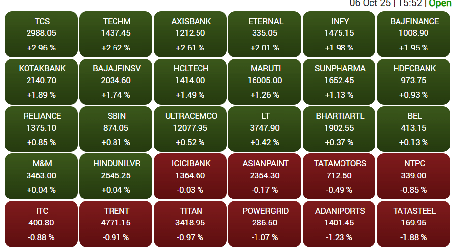 अक्टूबर के दूसरे सप्ताह की धमाकेदार शुरुआत हुई है. बेंचमार्क इंडेक्स निफ्टी और सेंसेक्स ने अक्टूबर में चार दिन में 1.5 फीसदी से ज्यादा की छलांग लगा दी है. सोमवार को खासतौर पर हेल्थ सेक्टर, फाइनेंस और आईटी स्टॉक्स में जमकर खरीदारी हुई.