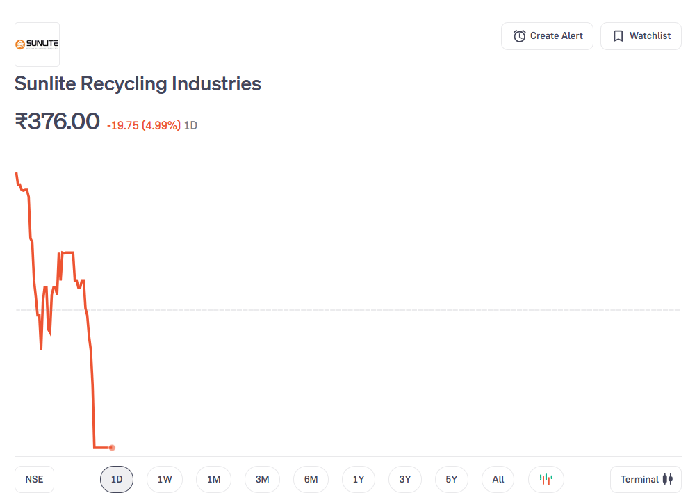 Sunlite Recycling Price मूवमेंट पर नजर डालें तो सनलाइट का स्टॉक हाल के महीनों में काफी चर्चा में रहा है. Q1FY26 में शेयर करीब 63 फीसदी चढ़ा. Q2 में यह अपने Q1 क्लोजिंग से लगभग 15 फीसदी ऊपर के स्तर तक पहुंचा. इसके बाद Q3FY26 की शुरुआत यानी अक्टूबर से अब तक शेयर में 121 फीसदी से ज्यादा की तेजी आ चुकी है, वहीं एक साल में 138 फीसदी रिटर्न दिया है. बीते शुक्रवार कंपनी के शेयर लोअर सर्किट पर चले गए और 376 रपपये पर बंद हुए. इस तेजी के पीछे कॉपर की कीमतों में उछाल और कंपनी की मजबूत ऑपरेशनल परफॉर्मेंस दोनों की भूमिका मानी जा रही है.