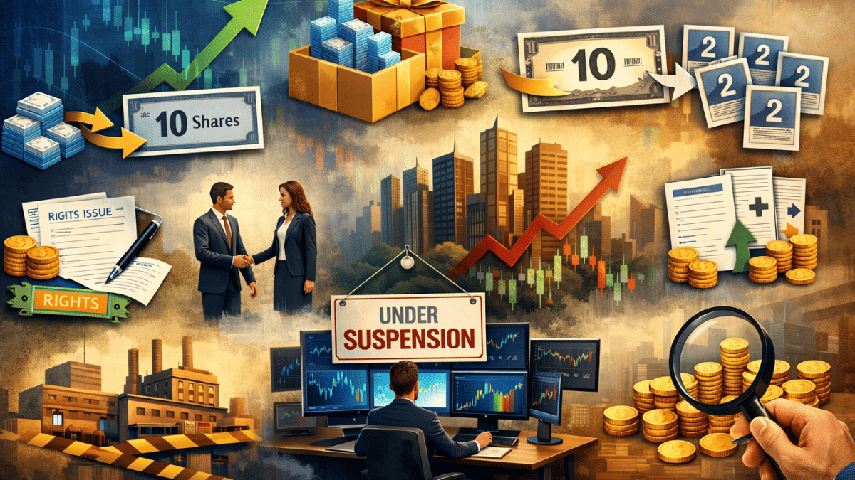 Corporate Action Next Week: नए साल की शुरुआत से पहले शेयर बाजार में हलचल तेज होने वाली है. 29 दिसंबर 2025 से 2 जनवरी 2026 के बीच कई लिस्टेड कंपनियों के शेयर बोनस इश्यू, स्टॉक स्प्लिट, शेयर कंसॉलिडेशन, राइट्स इश्यू और रिजॉल्यूशन प्लान से जुड़े सस्पेंशन जैसी अहम कॉर्पोरेट एक्शन के लिए एक्स-डेट पर ट्रेड करेंगे. ऐसे में निवेशकों के लिए यह जानना बेहद जरूरी है कि वे किन शेयरों को कब तक होल्ड करें, ताकि इन कॉर्पोरेट लाभों के लिए एलिजिबल बन सकें. सही समय पर लिया गया फैसला पोर्टफोलियो पर सीधा असर डाल सकता है.