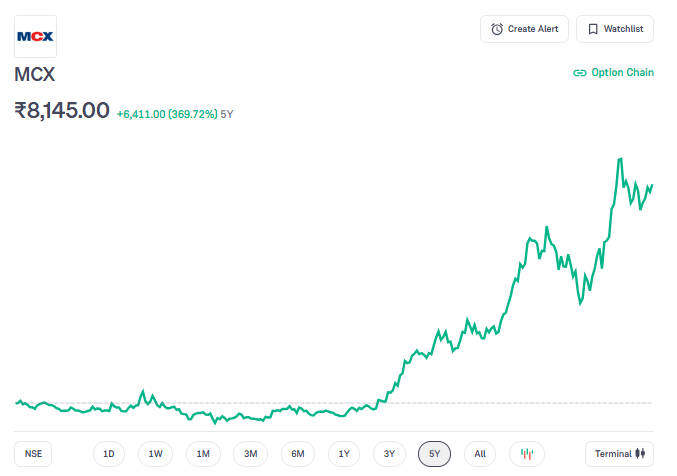 मल्टी कमोडिटी एक्सचेंज ऑफ इंडिया लिमिटेड (MCX) एक मान्यता प्राप्त स्टॉक एक्सचेंज है, जो सिक्योरिटीज कॉन्ट्रैक्ट्स (रेगुलेशन) एक्ट, 1956 के तहत काम करता है. यह पूरे देश में कमोडिटी डेरिवेटिव्स की ऑनलाइन ट्रेडिंग, क्लियरिंग और सेटलमेंट की सुविधा देता है. कंपनी का मार्केट कैप 41,545.06 करोड़ रुपये है. कंपनी कर्ज मुक्त है.