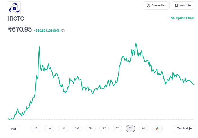 कंपनी का मार्केट कैपिटलाइजेशन करीब 53600 करोड़ रुपये के आसपास है. शेयर प्राइस ने पिछले एक साल में लगभग 20% की गिरावट दर्ज की है, जबकि 52-वीक हाई-लो रेंज 656-859.70 रुपये है. डेट-टू-इक्विटी रेश्यो मात्र 0.02 है, यानी कंपनी पर कर्ज का बोझ न के बराबर. इससे कंपनी बिना किसी दबाव के अपने कारोबार को विस्तार दे सकती है. मार्च 2025 तक IRCTC के पास 602.73 करोड़ रुपये का कैश रिजर्व था. IRCTC के शेयरों में बीते 5 साल में 139 फीसदी की तेजी आई है.