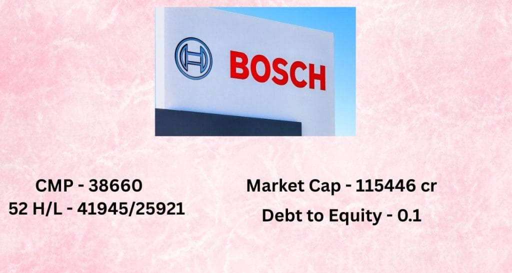 Bosch Ltd भारत में टेक्नोलॉजी और इंजीनियरिंग की बड़ी कंपनी है. ये ऑटोमोटिव कंपोनेंट्स, मोबिलिटी सॉल्यूशंस, इंडस्ट्रियल टेक्नोलॉजी और कंज्यूमर गुड्स बनाती है. कंपनी इनोवेशन, हाई क्वालिटी और सस्टेनेबल सॉल्यूशंस पर फोकस करती है.
