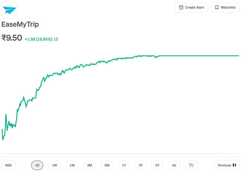 EaseMyTrip Share Upper Circuit Fundraise: 10 रुपये से भी कम कीमत वाले ऑनलाइन ट्रैवल कंपनी Easy Trip Planners के शेयर में लगातार दूसरे दिन जोरदार उछाल देखने को मिला. मंगलवार, 17 फरवरी को कारोबार के दौरान यह शेयर करीब 20 फीसदी चढ़कर अपर सर्किट पर पहुंच गया और 21 अगस्त 2025 के बाद अपने सबसे ऊंचे स्तर पर बंद हुआ. इससे पहले सोमवार यानी 16 फरवरी को भी इसमें लगभग 20 फीसदी की तेजी दर्ज की गई थी. इस तरह महज दो ट्रेडिंग सत्रों में शेयर करीब 44 फीसदी तक उछल चुका है.