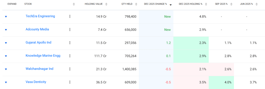 इसके अलावा कचोलिया ने टेकएरा इंजीनियरिंग में भी बड़ा दांव लगाया और कंपनी में 2.11% हिस्सेदारी ले ली, यानी करीब 348,800 शेयर खरीदे. नए निवेश के साथ-साथ उन्होंने गुजरात अपोलो में अपनी हिस्सेदारी बढ़ाकर 2.3% कर ली. हालांकि, उन्होंने वासा डेंटिसिटी और वालचंद नगर इंडस्ट्रीज में अपनी हिस्सेदारी 0.5% घटाई है.