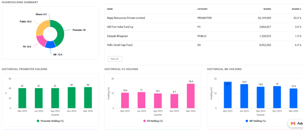 Bajaj Consumer Care FMCG सेक्टर की कंपनी है. FIIs ने इसमें भी अपनी हिस्सेदारी करीब 6.8 प्रतिशत बढ़ाई. कंपनी का सबसे बड़ा प्रोडक्ट Almond Drop Hair Oil है, जिसकी बिक्री तेजी से बढ़ रही है. इसके अलावा कंपनी नए प्रोडक्ट और नए बाजारों में भी विस्तार कर रही है.