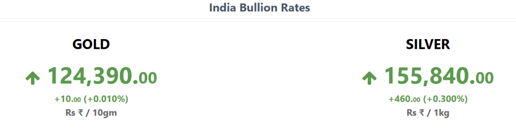मल्टी कमोडिटी एक्सचेंज MCX पर दिसंबर गोल्ड फ्यूचर्स 12 नवंबर को 0.34% बढ़कर ₹1,24,333 प्रति 10 ग्राम पर ट्रेड कर रहे थे, यानी आज ये 400 रुपये से ज्यादा महंगा हो गया, वहीं सिल्वर दिसंबर कॉन्ट्रैक्ट 0.62% उछलकर ₹1,55,645 प्रति किलो पर पहुंच गए. लिहाजा चांदी में 958 रुपये की बढ़त देखने को मिली.