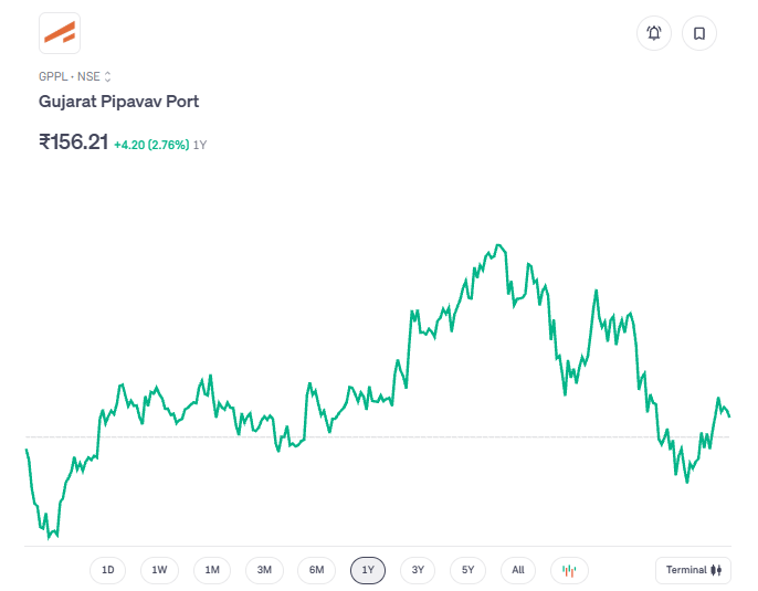 Gujarat Pipavav Port के शेयर 156 रुपये के आसपास कारोबार कर रहा है. बीते एक साल में इसमें केवल दो फीसदी की तेजी आई है. साथ ही पांच साल में स्टॉक 65 फीसदी उछला है.