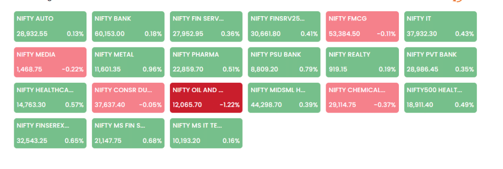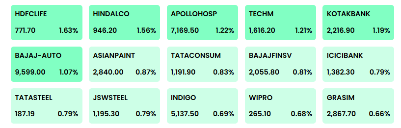निफ्टी पर कोटक महिंद्रा बैंक, हिंडाल्को, टेक महिंद्रा, अपोलो हॉस्पिटल्स और एक्सिस बैंक टॉप गेनर शेयर रहे. वहीं ट्रेंट और रिलायंस इंडस्ट्रीज में दबाव देखने को मिला. अगर सेक्टोरल इंडेक्स की बात करें तो निफ्टी मेटल और PSU बैंक इंडेक्स में शानदार तेजी देखने को मिली है.