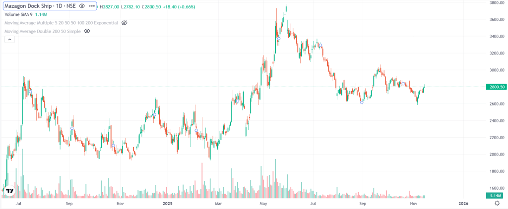 - शेयर प्राइस: 2,800.5 रुपये
