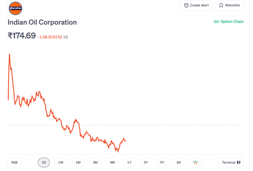 IOC शेयर में आज गिरावट जारी, 6 महीने में 23% रिटर्न, दमदार कमाई के बाद क्या अब भी है कमाई का मौका?