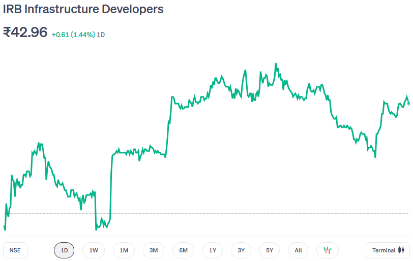 शुक्रवार को IRB Infrastructure के शेयर 1.44 फीसदी बढ़कर 42.96 रुपये पर बंद हुए थे. हालांकि, साल 2025 में अब तक शेयर में 28 फीसदी की गिरावट देखी गई है.