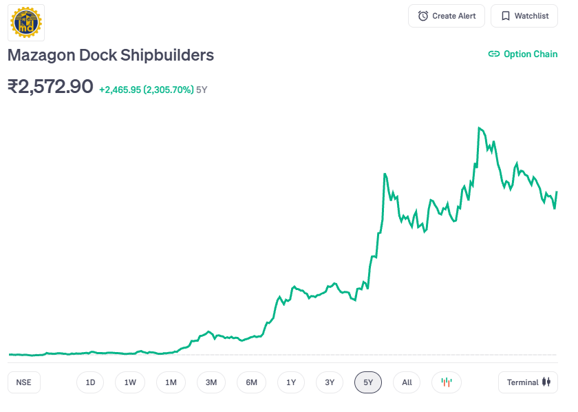 दूसरे नंबर पर है Mazagon Dock Shipbuilders, जो रक्षा मंत्रालय के अधीन एक सरकारी शिपयार्ड है. यह कंपनी युद्धपोत, पनडुब्बी और अन्य जहाज बनाने में माहिर है. कंपनी का ROE 28.7% और ROCE 38.7% है. FY25 में इसकी बिक्री ₹1.14 लाख करोड़ से ज्यादा रही. Q2 FY26 में भी मुनाफा बढ़कर ₹7,099 करोड़ पहुंच गया. अक्टूबर 2025 तक कंपनी का ऑर्डर बुक करीब ₹2.74 लाख करोड़ का था. पांच साल में इसने 2300 फीसदी तक रिटर्न मिला है.