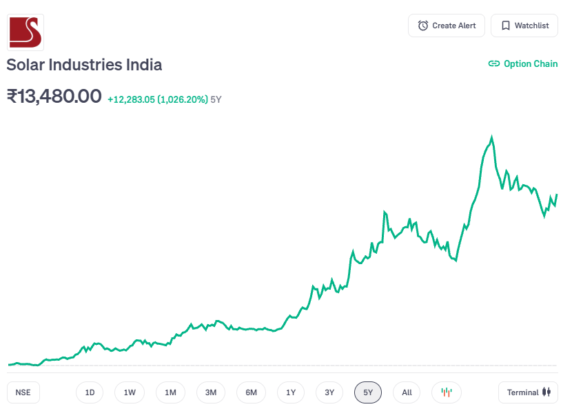 इस सूची में सबसे पहले नाम आता है Solar Industries India का. यह कंपनी औद्योगिक विस्फोटक (Industrial Explosives) बनाने के साथ-साथ अब डिफेंस सेक्टर में भी तेजी से आगे बढ़ रही है.