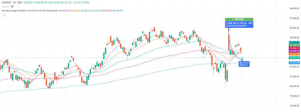 फरवरी के महीने में अब तक शेयर बाजार में जबरदस्त उतार-चढ़ाव देखने को मिला है. भारत अमेरिका ट्रेड डील, यूनियन बजट 2026 और कॉरपोरेट नतीजों जैसे बड़े इवेंट्स के चलते बाजार कभी तेजी तो कभी भारी दबाव में नजर आया. बजट वाले दिन यानी 1 फरवरी को सेंसेक्स गिरकर 79899 और निफ्टी 24572 तक आ गया था. इसके बाद 3 फरवरी को भारत अमेरिका ट्रेड एग्रीमेंट के बाद बाजार में जोरदार रिकवरी आई और सेंसेक्स 85872 और निफ्टी 26341 के हाई तक पहुंच गया.