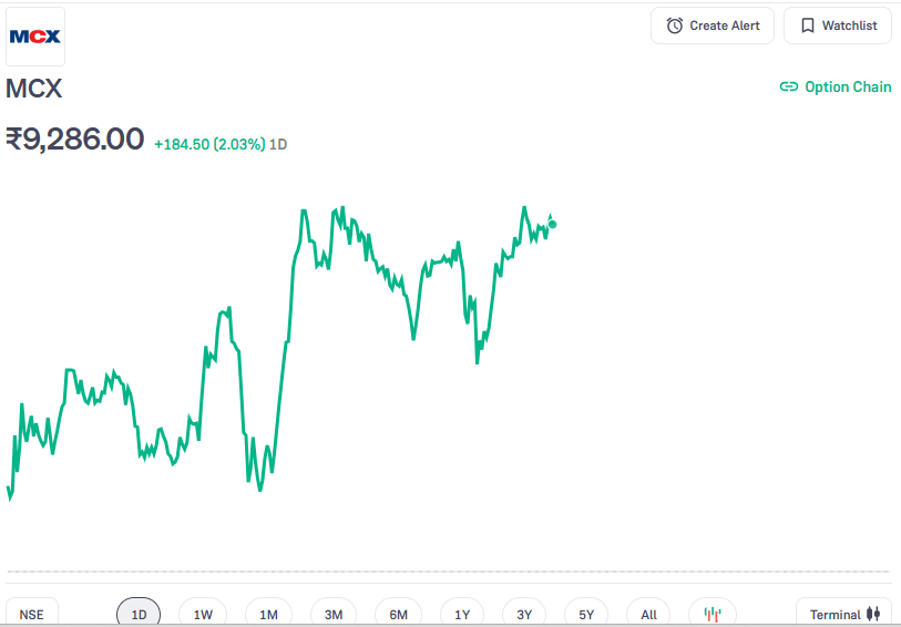 मल्टी कमोडिटी एक्सचेंज ऑफ इंडिया लिमिटेड (MCX) भारत का सबसे बड़ा कमोडिटी एक्सचेंज है. यहां सोना, चांदी जैसी चीजों की फ्यूचर्स ट्रेडिंग होती है. इसे SEBI नियंत्रित करती है. कमोडिटी फ्यूचर्स ट्रेडिंग में MCX का 95.93 फीसदी हिस्सा है. मतलब, भारत में जितनी भी कमोडिटी फ्यूचर्स ट्रेडिंग होती है, उसका लगभग पूरा हिस्सा MCX पर होता है. यह भारत का नंबर-1 कमोडिटी एक्सचेंज है.