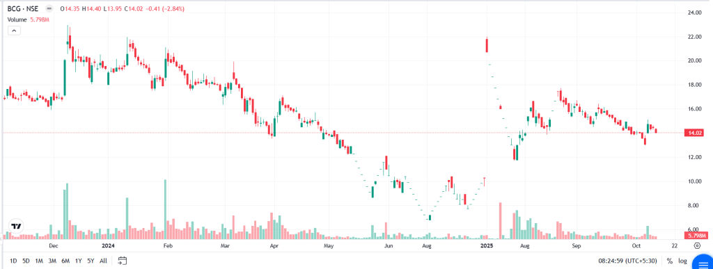 - Brightcom Group का शेयर 13 अक्टूबर 2025 को 2.84 फीसदी गिरकर 14.02 रुपये पर कारोबार कर रहा था. कंपनी का मार्केट कैप 2,829.97 करोड़ रुपये है.