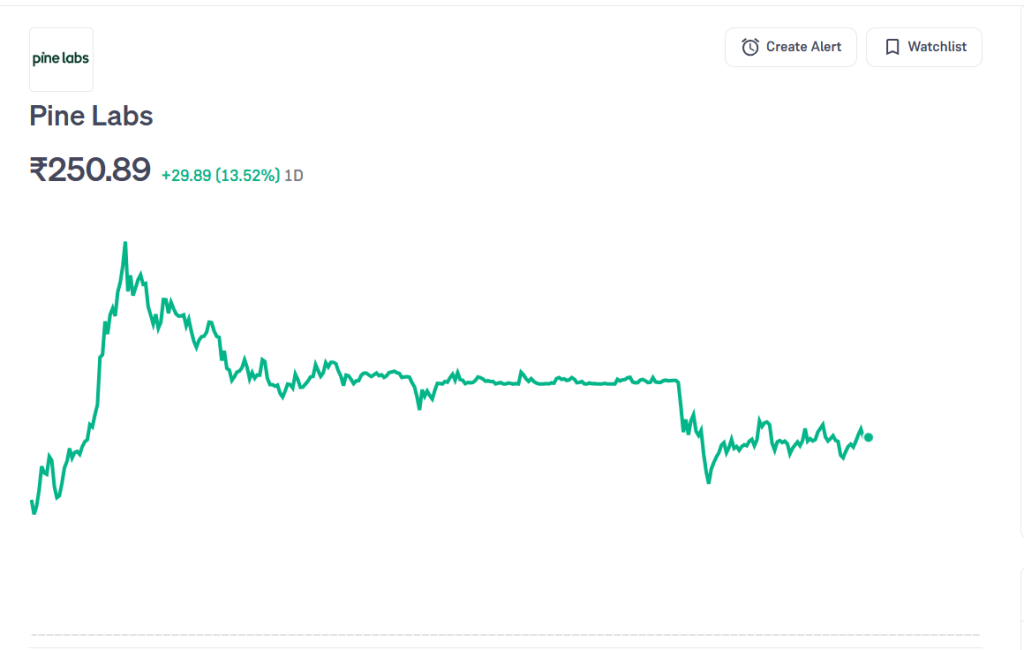 Pine Labs ने शुक्रवार को शेयर बाजार में मजबूत लिस्टिंग की. कंपनी के शेयर अपने इश्यू प्राइस से 14 फीसदी ऊपर लिस्ट हुए, जबकि इसके 3,900 करोड़ रुपये के IPO को निवेशकों से ठंडी प्रतिक्रिया मिली थी. स्टॉक प्रीमियम पर लिस्ट हुआ और intraday ट्रेडिंग के दौरान 28.5 फीसदी तक चढ़कर 284 रुपये के स्तर तक पहुंच गया. हालांकि बाद में इसमें हल्की गिरावट आई और यह 250 रुपये पर बंद हुआ, जो इसके इश्यू प्राइस 221 रुपये से 28 रुपये ज्यादा है.