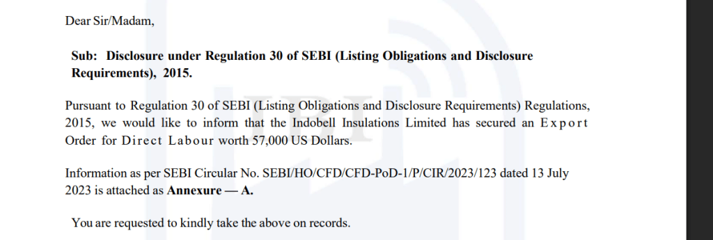 इंडोबेल इंसुलेशंस का शेयर 24 नवंबर को इंट्राडे में करीब 2.6 प्रतिशत ऊपर कारोबार कर रहा था. हालांकि पिछले एक हफ्ते में स्टॉक 13.7 प्रतिशत टूटा है और पिछले तीन महीने में यह 42.49 प्रतिशत गिर चुका है. एक्सपोर्ट ऑर्डर की घोषणा के बाद स्टॉक में निवेशकों की दिलचस्पी बढ़ गयी और वॉल्यूम भी मजबूत दिखा. इसके अलावा कंपनी ने अपने कर्ज को काफी हद तक घटाया है.