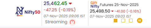6 नवंबर को भारतीय शेयर बाजार में कमजोरी देखी गई, जहां निफ्टी करीब 25,500 के स्तर पर बंद हुआ. सेंसेक्स में 148.14 अंक यानी 0.18 फीसदी की गिरावट आई और यह 83,311.01 पर बंद हुआ. वहीं, निफ्टी भी 87.95 अंक यानी 0.34 फीसदी नीचे आकर 25,509.70 पर बंद हुआ. इस दौरान लगभग 1174 शेयर बढ़े, 2855 गिरे और 130 शेयर स्थिर रहे.