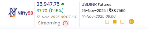 शुक्रवार को निफ्टी50 की शुरुआत 25,767.90 अंक पर हुई. दिन भर ज्यादातर समय इंडेक्स नुकसान में रहा और 25,740.80 अंक तक का निचला स्तर छू लिया. लेकिन बिहार चुनाव में NDA की बड़ी जीत की खबर आने पर दोपहर 3 बजे के करीब अचानक तेजी आई. निफ्टी ने 25,940.20 अंक का ऊपरी स्तर बनाया. अंत में 0.12 फीसदी की बढ़त के साथ 30.90 अंक ऊपर चढ़कर 25,910.05 अंक पर बंद हुआ.