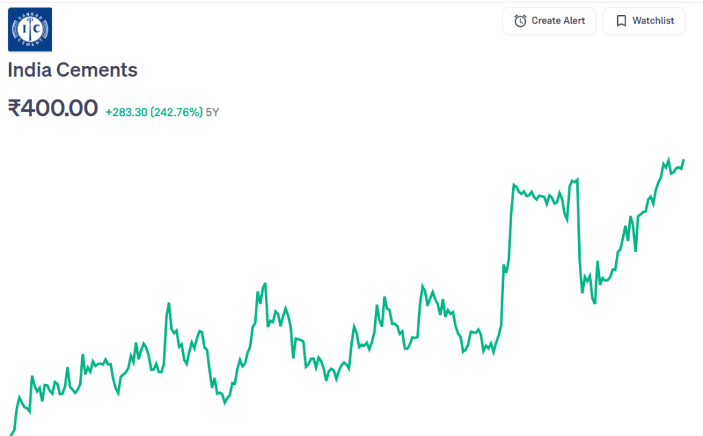 India Cements दक्षिण भारत की अग्रणी सीमेंट कंपनियों में से एक है. कंपनी Sankar, Coromandel और Raasi जैसे ब्रांड्स के तहत सीमेंट बेचती है. इस तिमाही में प्रमोटर्स की हिस्सेदारी 81.49 फीसदी से घटकर 75.60 फीसदी हो गई. कंपनी का मार्केट कैप 12,794 करोड़ रुपये है और शेयर 400 रुपये पर कारोबार कर रहा है. बीते पांच साल में कंपनी के शेयरों ने निवशेकों को 243 फीसदी के लगभग रिटर्न दिया है.