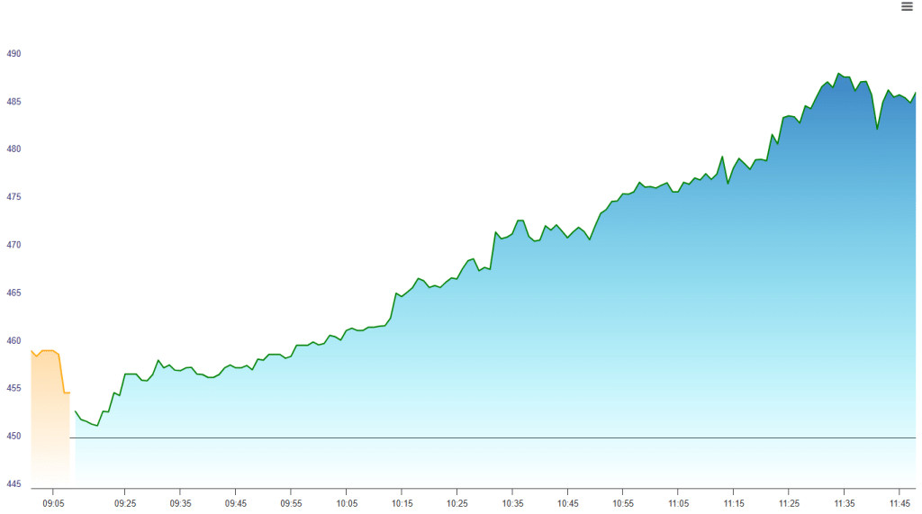 11 बजकर 36 मिनट पर इसके शेयर 8.48 फीसदी चढ़कर 488.40 रुपये के रिकॉर्ड हाई पर पहुंचा. 2025 में अब तक 135 फीसदी रिटर्न दिया है. पिछले एक साल में शेयर की कीमतों में 139 फीसदी की बढ़ोतरी हुई. BSE पर पांच साल में इसने रिटर्न 1850 फीसदी से अधिक दिया है.