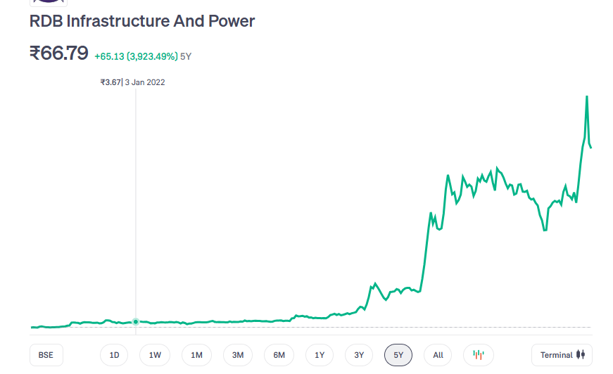 शेयर बाजार में RDB Infrastructure and Power Ltd को लेकर बड़ी खबर सामने आई है. कंपनी ने 3 फरवरी 2026 को बोर्ड ऑफ डायरेक्टर्स की बैठक बुलाने का फैसला किया है, जिसमें नेशनल स्टॉक एक्सचेंज यानी NSE पर कंपनी के इक्विटी शेयर लिस्ट कराने के प्रस्ताव पर विचार और मंजूरी दी जाएगी. फिलहाल कंपनी BSE पर लिस्टेड है और इसका मार्केट कैप करीब 1,323 करोड़ रुपये है. 27 जनवरी को कंपनी का शेयर 66.79 रुपये पर बंद हुआ था. जनवरी 2022 में यही शेयर 3 रुपये के करीब था. कंपनी अब कंपनी सोलर और ग्रीन एनर्जी सेगमेंट में भी तेजी से कदम बढ़ा रही है. खास बात यह है कि इस स्टॉक ने पिछले 5 साल में करीब 4,200 प्रतिशत का मल्टीबैगर रिटर्न दिया है, जिससे यह निवेशकों के बीच काफी चर्चा में रहा है.
