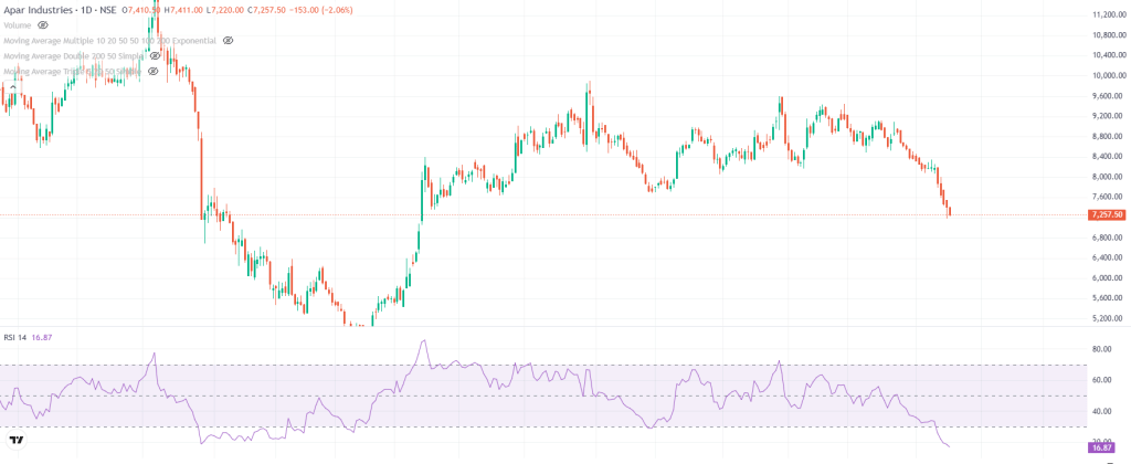 सोमवार को कंपनी का मार्केट कैप करीब 29,044 करोड़ रुपये रहा. शेयर 7,234 रुपये पर बंद हुआ. RSI 16.87 रहा, जो साफ तौर पर ओवरसोल्ड जोन दिखाता है. ऐसे लेवल्स पर टेक्निकल बाउंस की संभावना बनती है.