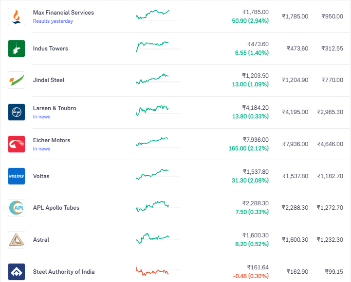 इसके अलावा Astral, APL Apollo Tubes, Hitachi Energy India, Indian Oil Corporation Limited (IOCL), Indus Towers, Kirloskar Oil Engines, Max Financial Services, Steel Authority of India (SAIL) और ZF Commercial Vehicle Control Systems India ने भी 52 हफ्तों की नई ऊंचाई हासिल की.