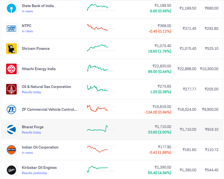 कमजोर बाजार के बावजूद SBI, L&T, Eicher Motors और Shriram Finance के शेयरों में जोरदार खरीदारी देखने को मिली. वहीं, NTPC और Oil and Natural Gas Corporation (ONGC) ने अपने 52-वीक हाई लेवल पर पहुंच गया है.
