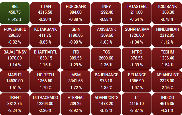 - Eternal करीब 2.92%, UltraTech Cement 2.26% और Trent 2.24% तक टूट गए.
