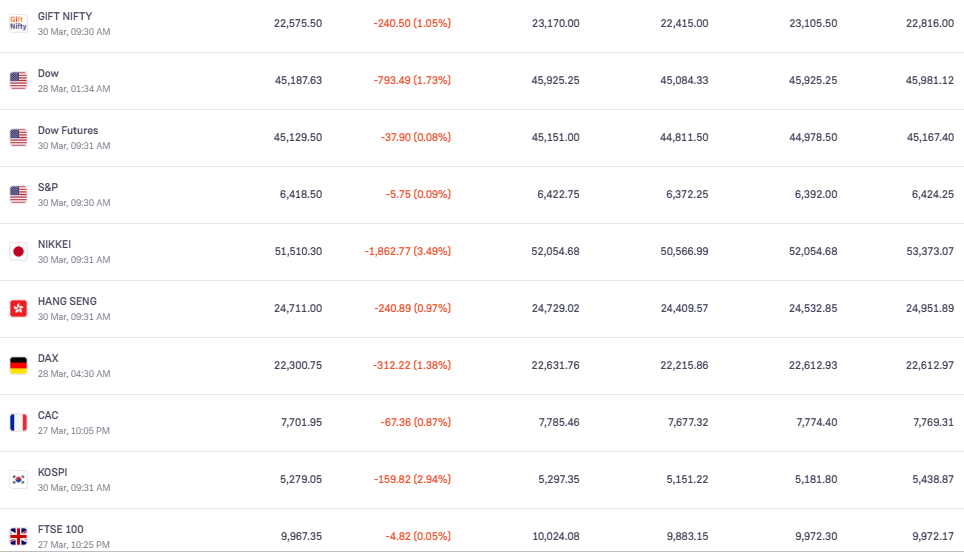 FY26 के आखिरी कारोबारी दिन लुढ़का शेयर बाजार; सेंसेक्स 1190 और Nifty 300 अंक टूटा, रुपये ने दिखाई मजबूती