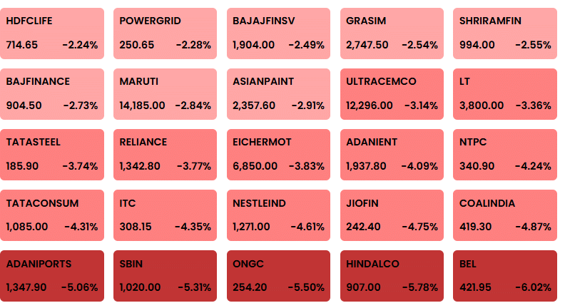 सेंसेक्स के किन शेयरों में सबसे ज्यादा गिरावट