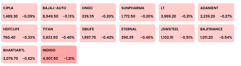 शेयर बाजार में गिरावट का सिलसिला दूसरे दिन भी जारी रहा. हफ्ते के दूसरे कारोबारी दिन मंगलवार, 9 दिसंबर को सेंसेक्स 436 अंक टूटकर 84,666 पर बंद हुआ, जबकि निफ्टी 121 अंक गिरकर 25,840 के स्तर पर बंद हुआ. सेंसेक्स के 30 में से 22 शेयर लाल निशान में रहे और सिर्फ 8 शेयरों में बढ़त देखने को मिली. एशियन पेंट्स का शेयर सबसे ज्यादा 4 फीसदी लुढ़का, जबकि आईटी सेक्टर में सबसे तीखी 1.19 फीसदी की गिरावट दर्ज की गई