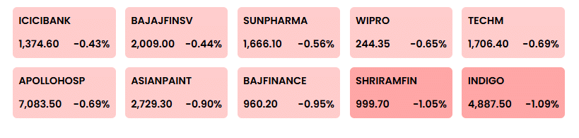 भारतीय शेयर बाजार में कल यानी 19 दिसंबर को कमजोरी का माहौल रहा. कारोबार के अंत में सेंसेक्स 324 अंक फिसलकर 83,246 के स्तर पर बंद हुआ, जबकि निफ्टी 108 अंक की गिरावट के साथ 25,585 पर बंद हुआ. सेक्टोरल फ्रंट पर ऑटो और FMCG को छोड़कर सभी सेक्टरों में बिकवाली देखने को मिली. खासतौर पर मीडिया सेक्टर सबसे ज्यादा दबाव में रहा, जहां इसमें 1.84 प्रतिशत की गिरावट दर्ज की गई.