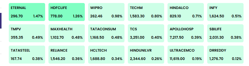 हफ्ते के पहले कारोबारी दिन बाजार गिरकर खुला. निफ्टी पर टाटा कंज्यूमर, टाटा स्टील, एक्सिस बैंक, रिलायंस इंडस्ट्रीज और टेक महिंद्रा शुरुआती कारोबार में प्रमुख बढ़त वाले शेयर रहे. वहीं बजाज फाइनेंस, बजाज फिनसर्व, सिप्ला, एसबीआई लाइफ इंश्योरेंस और एशियन पेंट्स में दबाव देखने को मिला.