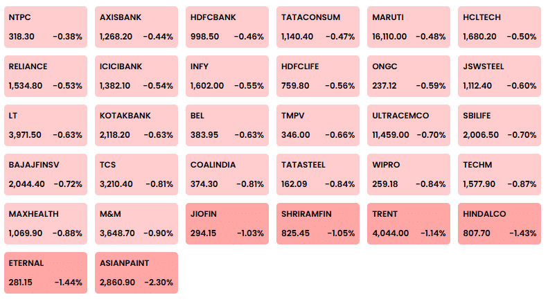 निफ्टी में Cipla और Apollo Hospitals हल्की बढ़त के साथ टॉप गेनर रहे, जबकि Asian Paints, Trent, Hindalco, Shriram Finance और Tech Mahindra में दबाव देखने को मिला. अगर सेक्टोरल इंडेक्स की बात करें तो सभी सेक्टर गिरावट के साथ ट्रेड कर रहे थे.